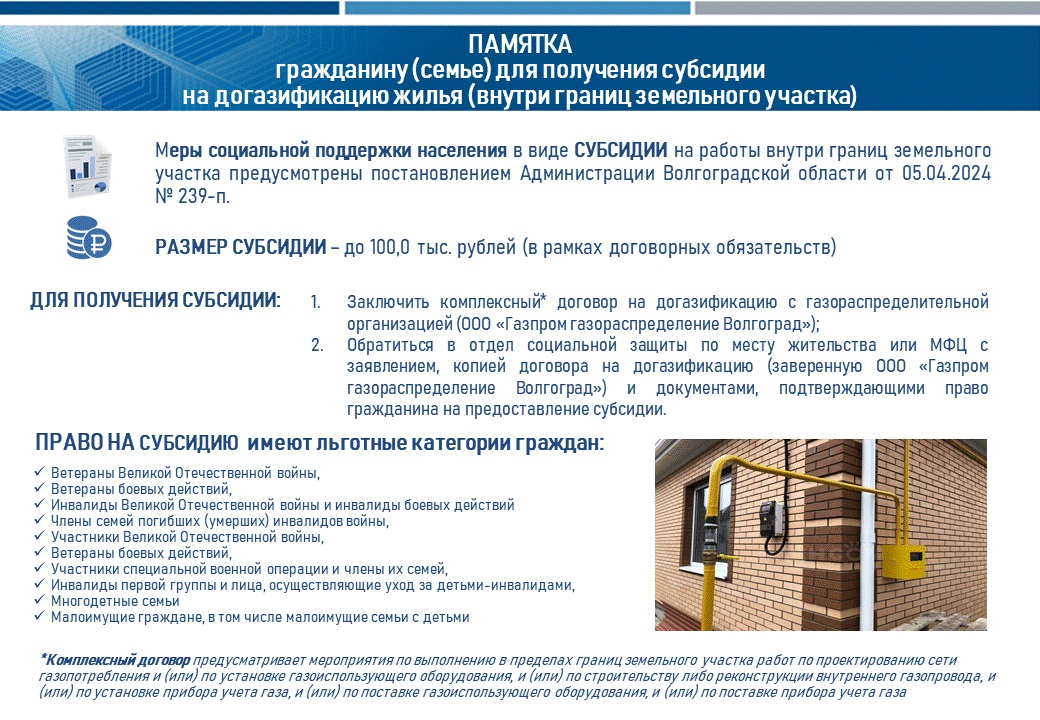 Памятка гражданину для получения субсидии на догазификацию жилья